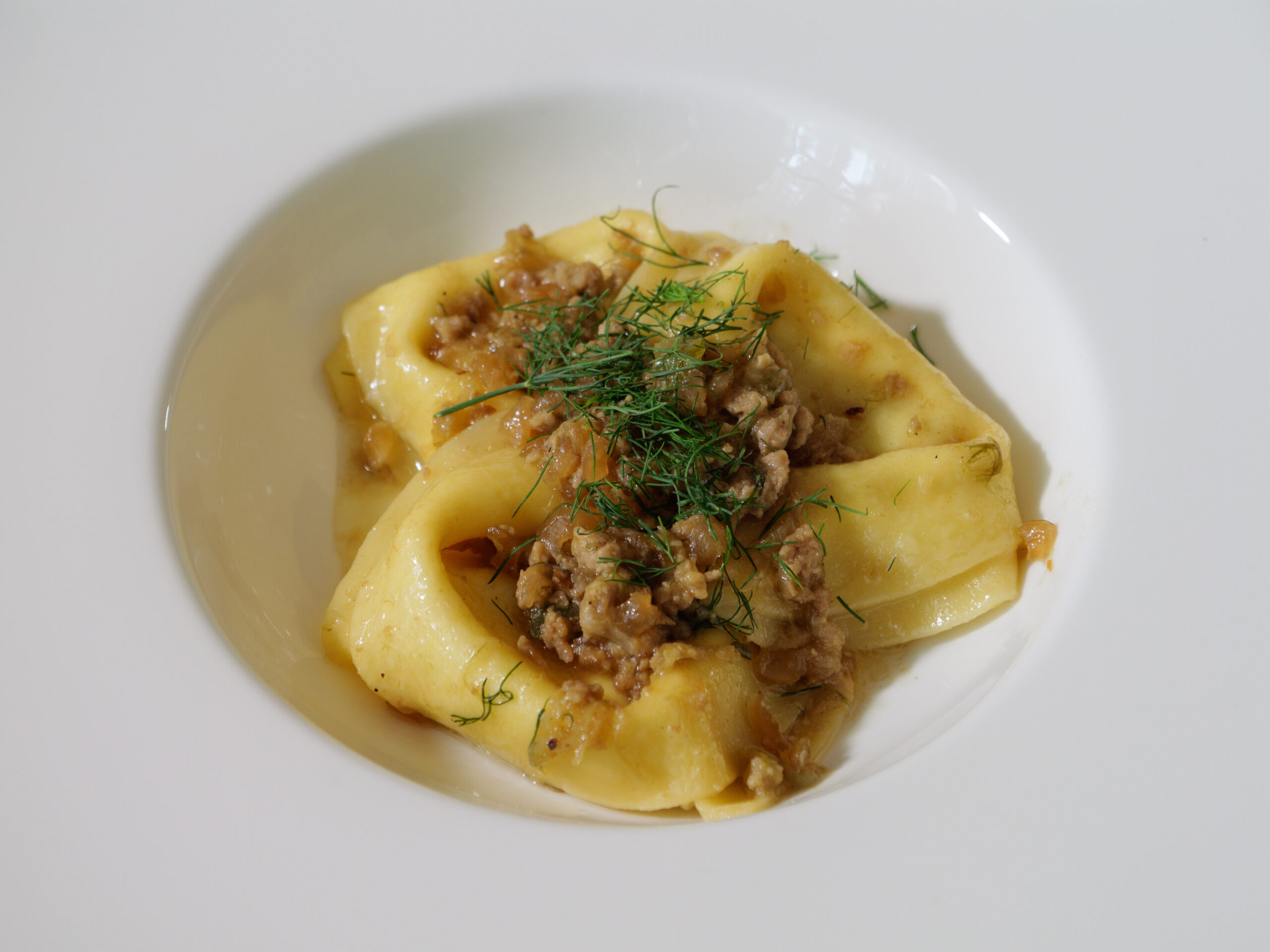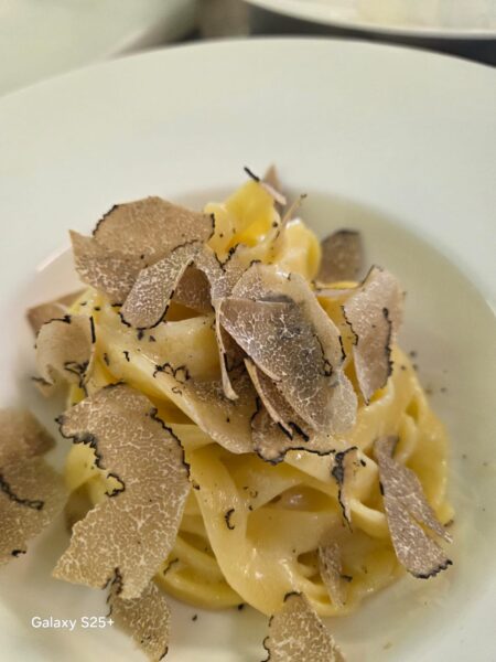 Meat-filled ravioli with cheese cream and truffle shavings €25