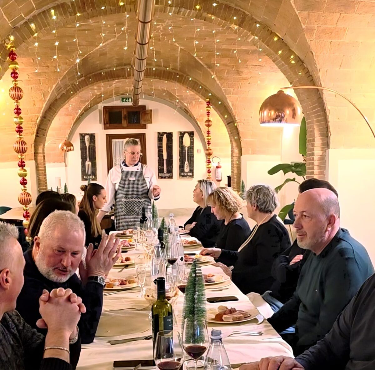 Segue una degustazione di specialità toscane, con salumi e formaggi selezionati, bruschette, sformato e pappa al pomodoro: piatti che fanno parte della cultura gastronomica locale e che non hanno bisogno di reinterpretazioni.